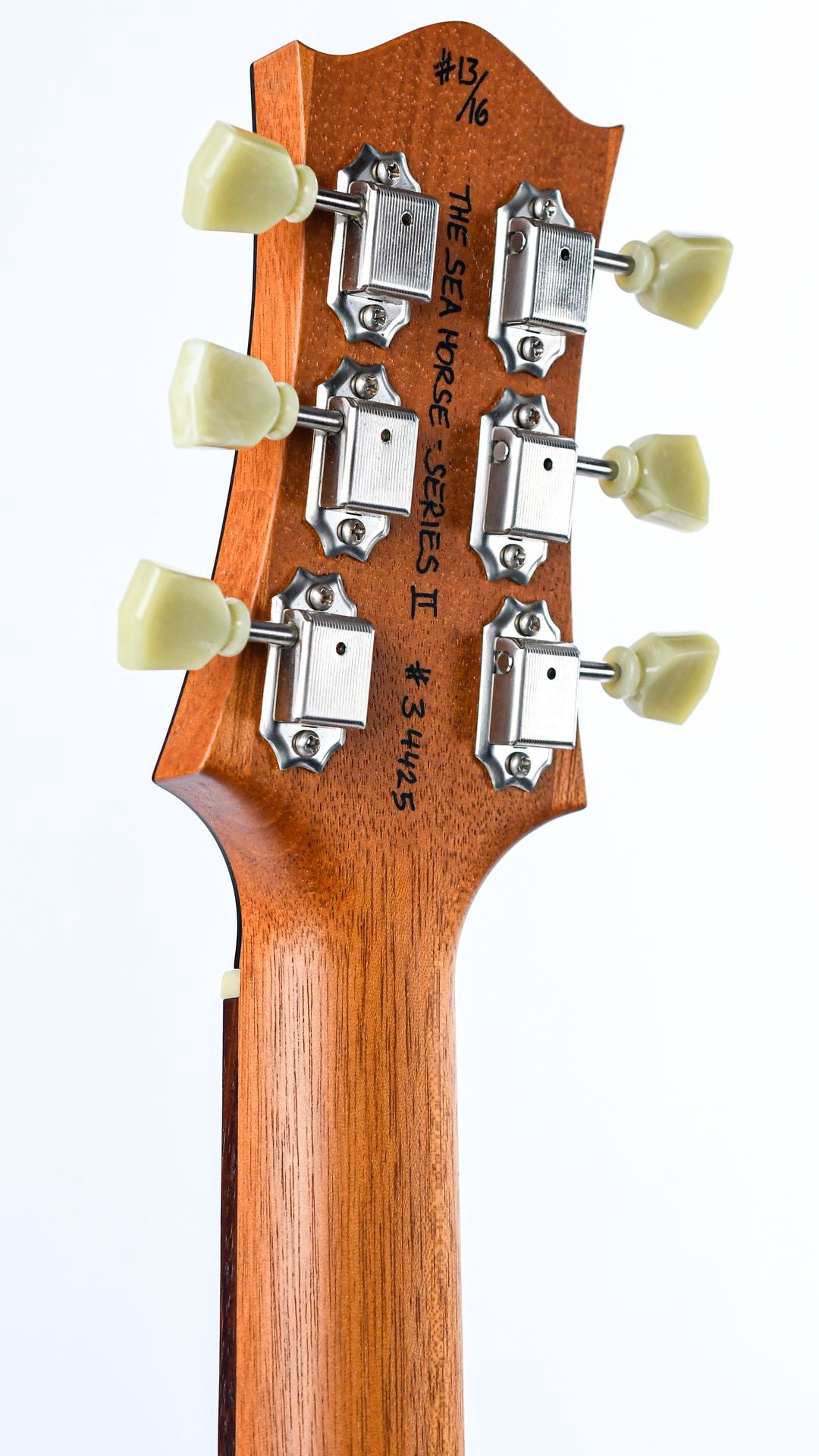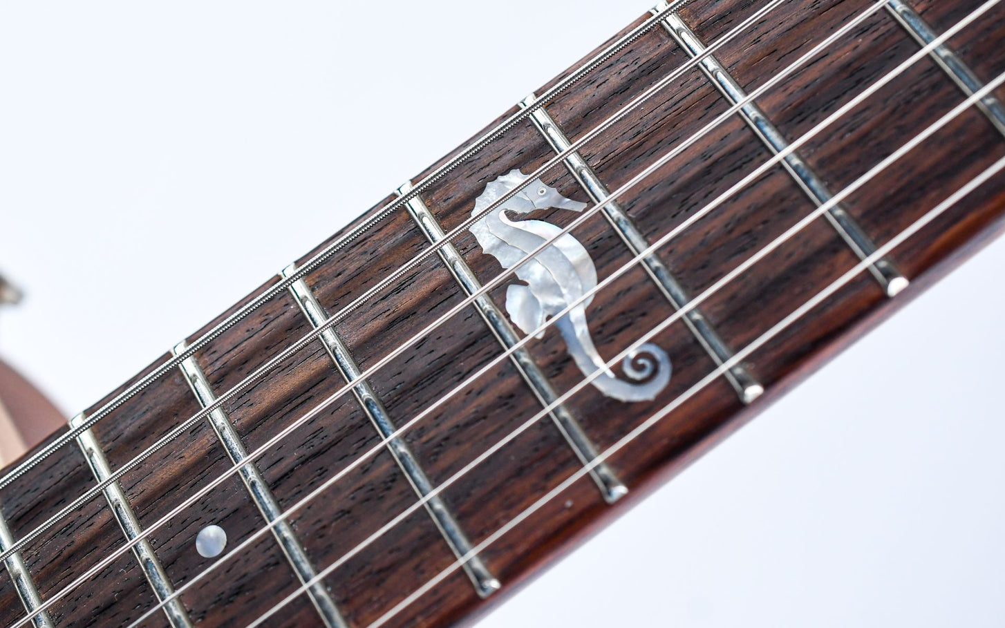 This Limited Series II The Seahorse edition marks a special chapter in that history, where Huber infused his love for maritime themes into an exclusive run of only 16 instruments. Each guitar in this series is individually hand-numbered and features the distinctive seahorse inlay, making this Orca a true collector’s piece!