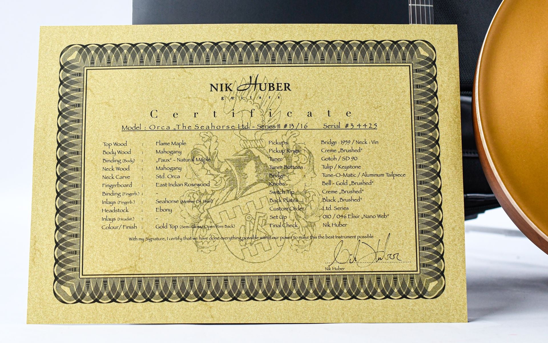This Nik Huber Orca The Seahorse is number 13 from an exclusive series of only 16 guitars, a German boutique instrument whose appearance is just as impressive as its tone!