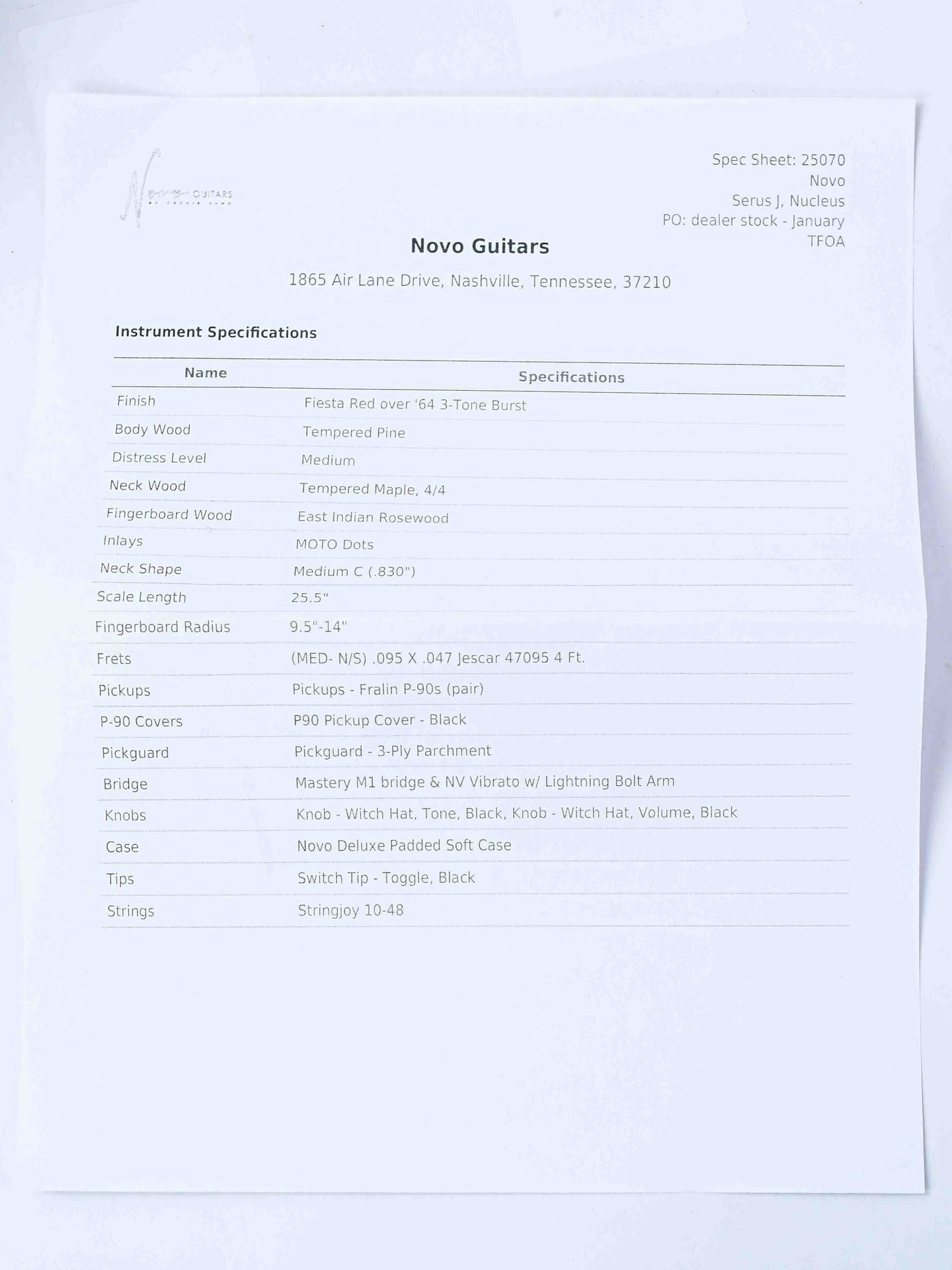Masterfully designed by the famous Dennis Fano and built by the skilled team in Nashville, these guitars are in a class of their own! Just like the Serus P2 models, these exclusive guitars are only available through an official dealer, such as TFOA. It is therefore not possible to buy a Finish over Finish Serus J directly from Novo.