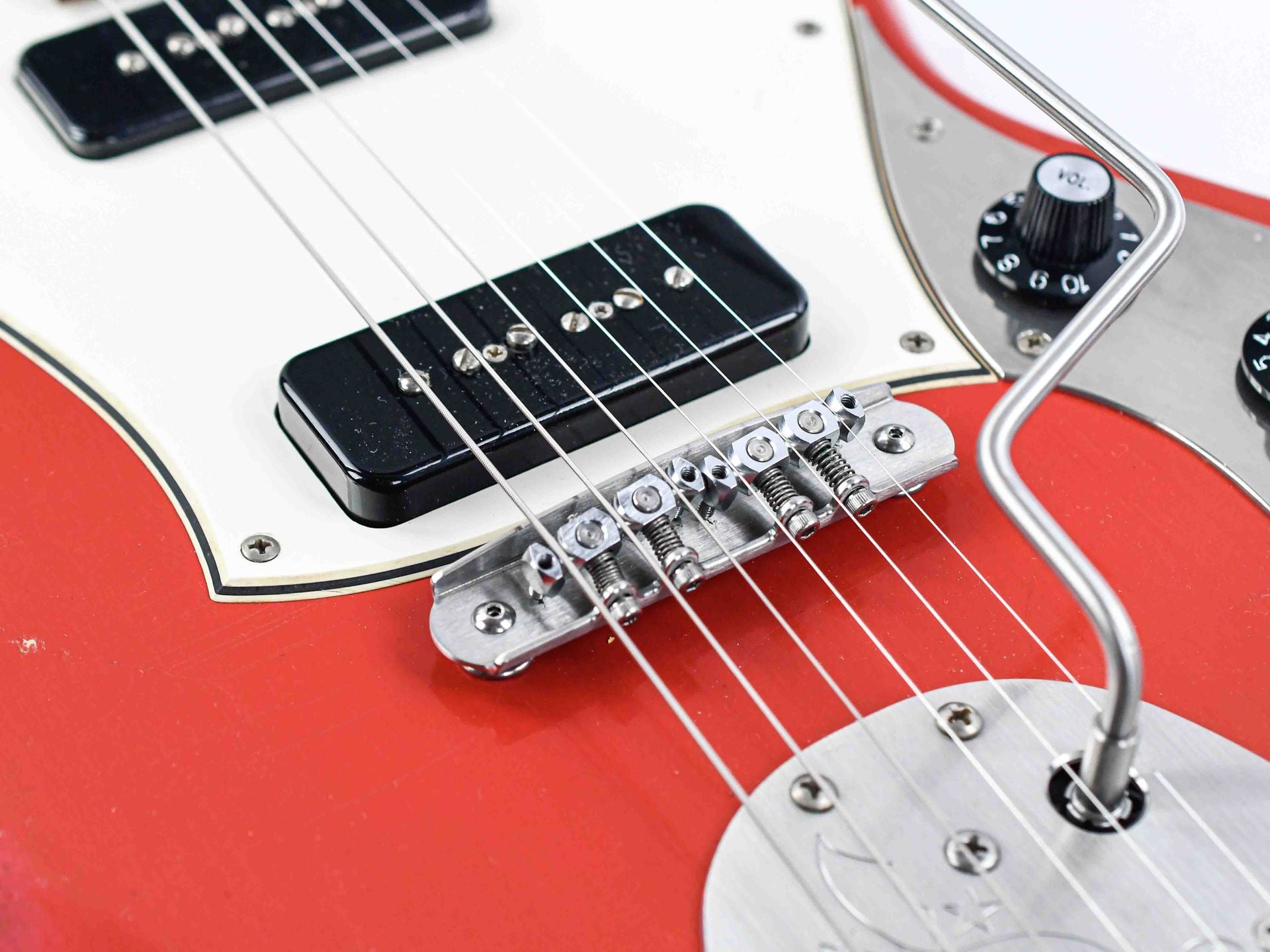 This Serus J is a great versatile workhorse with its comfortable contoured body. However, the 'J' also draws inspiration from the Jazzmaster and distinguishes itself through the new 'Novo-branded' Mastery bridge and vibrato. Loaded with two Fralin P90's and a simple control layout of a single volume and tone with a 3-way toggle switch, this guitar is ready to rock!