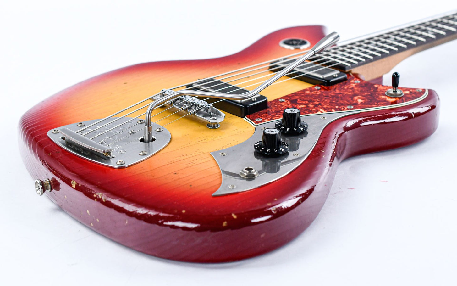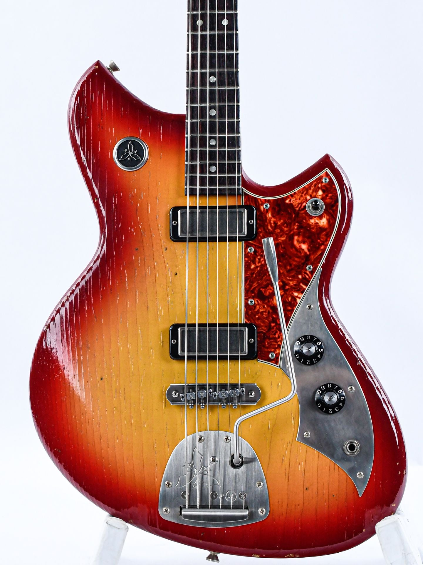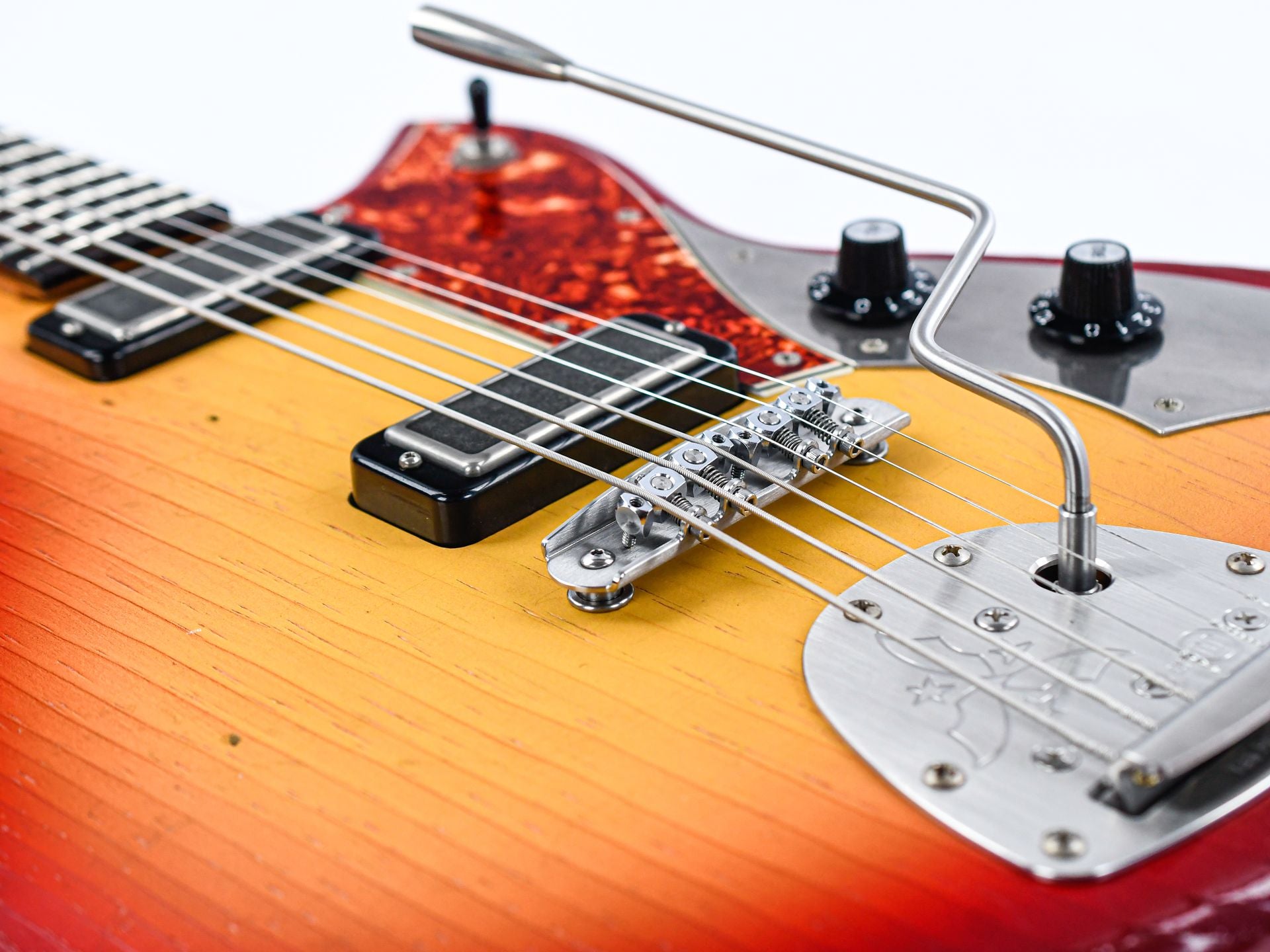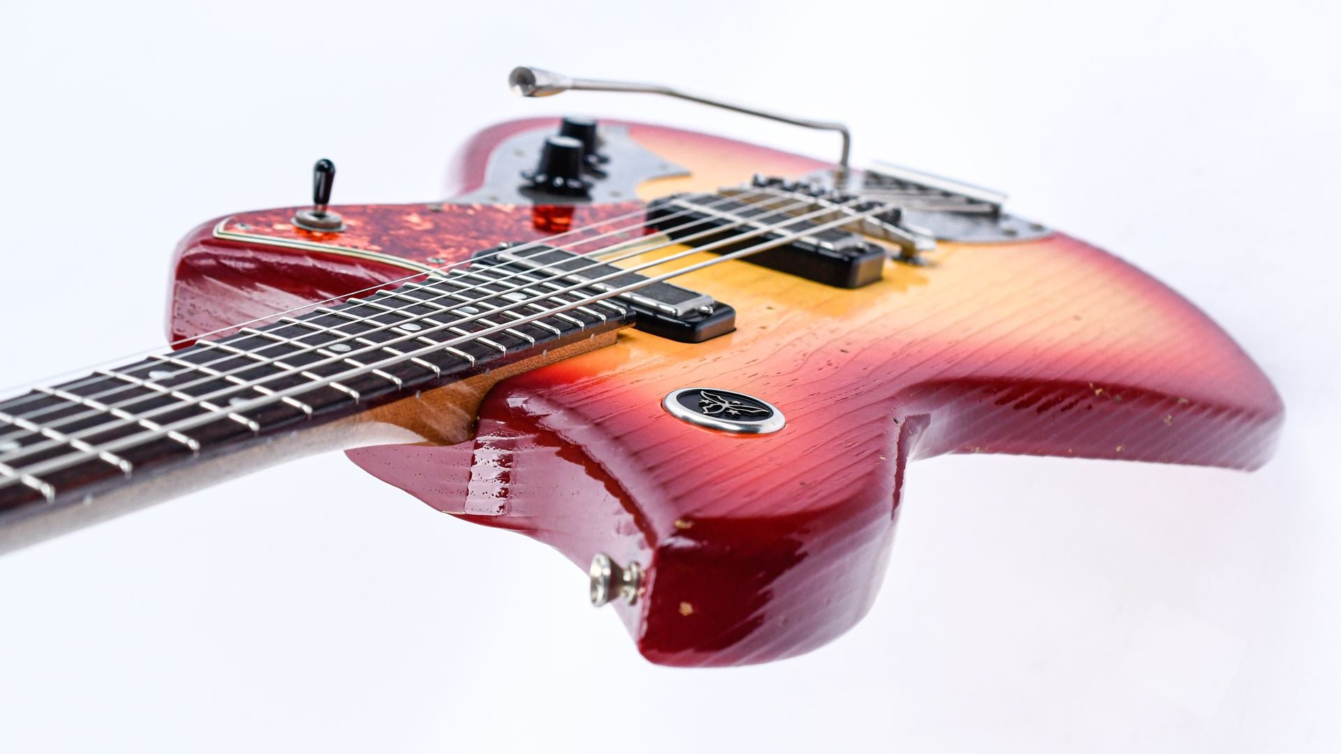 Like the Serus P2, the Serus J features a comfortably contoured body, but adds a nod to the Jazzmaster with a Mastery bridge and vibrato for superb tuning stability and expression. Cloaked in an aged Maroon Burst finish with a tortoise pickguard, it’s visually striking and oozes vintage charm.