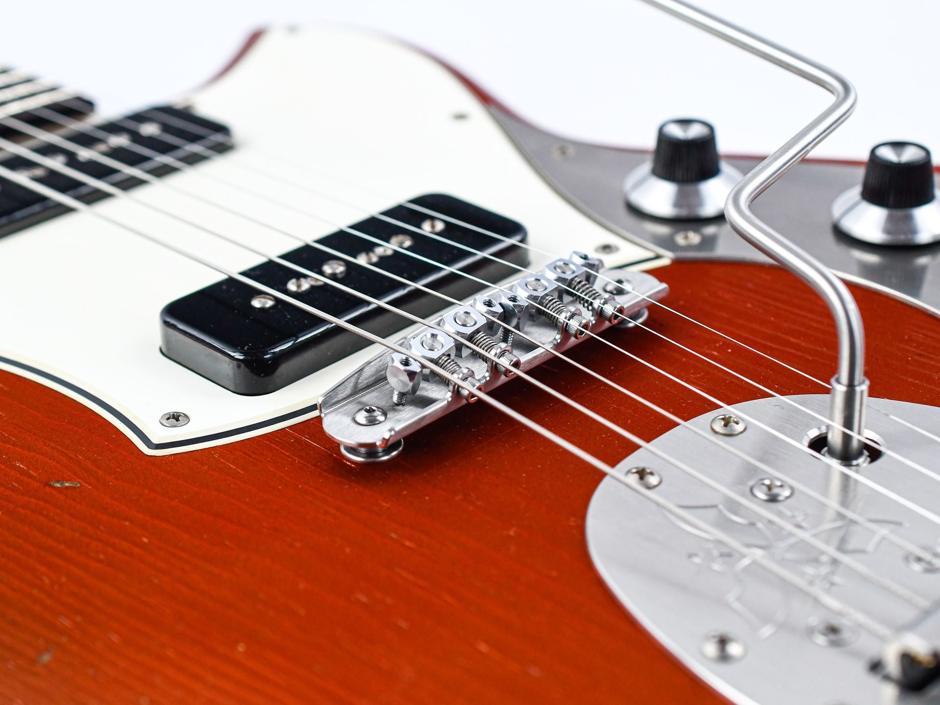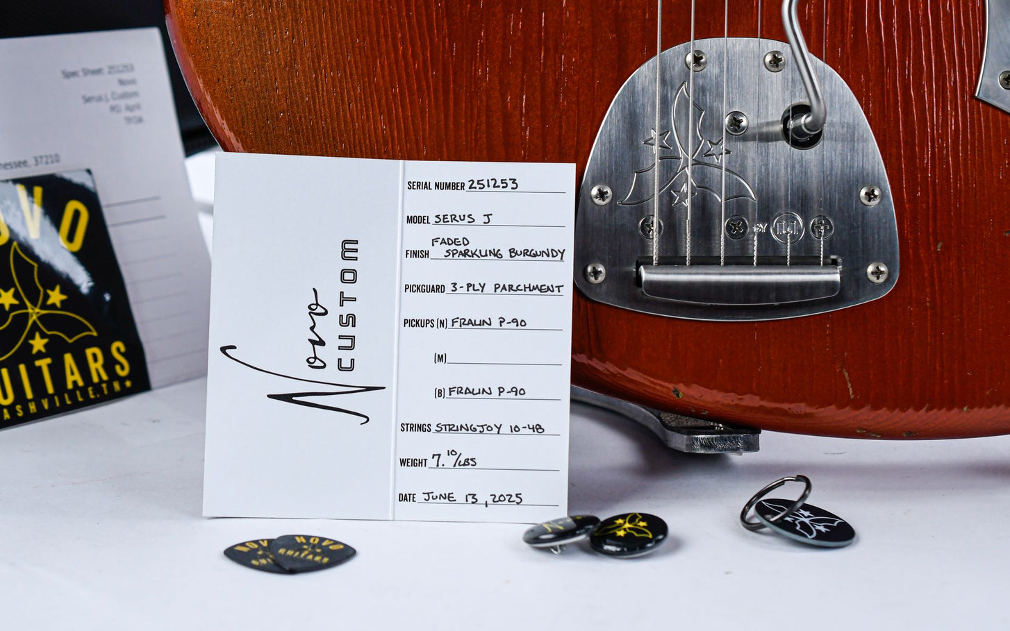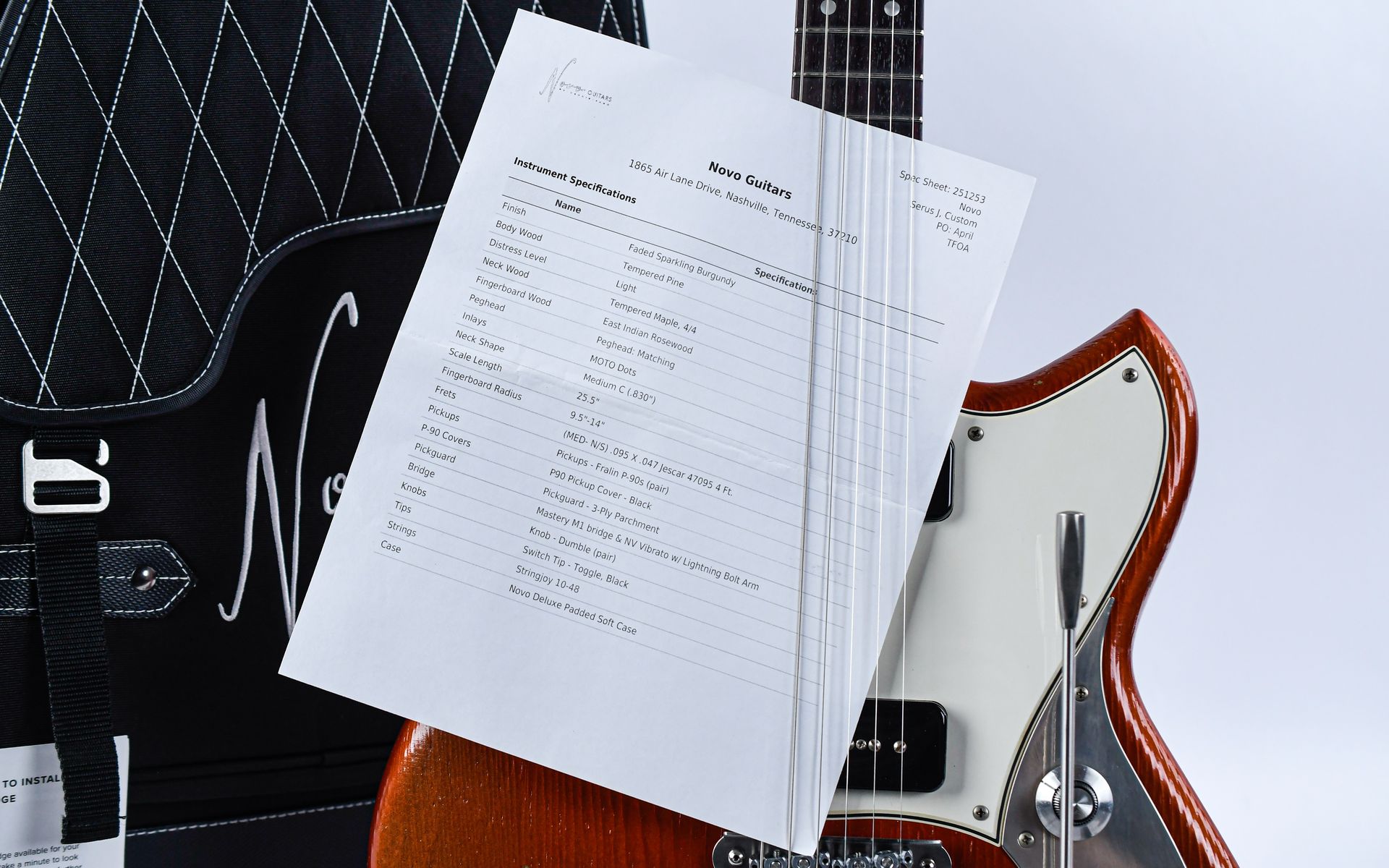 The Serus J features a contoured body made of roasted pine, providing exceptional resonance and an aged look full of character. This model stands out with its Novo-branded Mastery bridge and vibrato, inspired by the Jazzmaster, giving a fresh twist to a classic design. Equipped with two Fralin P90 pickups, it delivers the rich, powerful tones P90 enthusiasts crave!