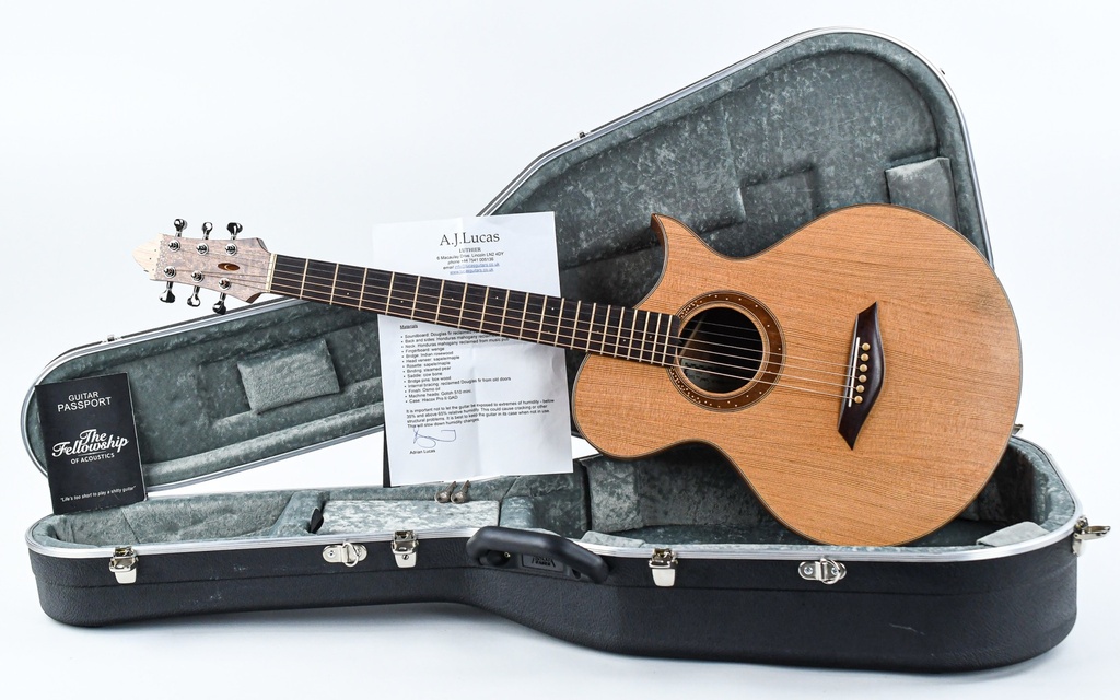 Adrian Lucas, gevestigd in Lincoln, VK, bouwt al meer dan 30 jaar gitaren. Hij gebruikt alleen 'Reclaimed' oftewel teruggewonnen en lokale houtsoorten zonder afbreuk te doen aan de kwaliteit van de instrumenten.