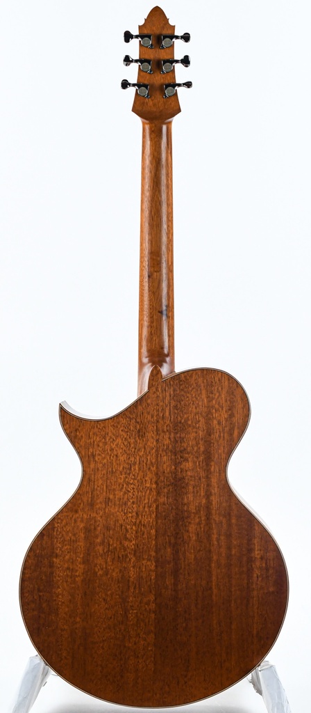 For example, Lucas often builds the Arbor with the Sweep cutaway option that gives easy access to the highest frets. The 'Manzer wedge' is also a hallmark of the Lucas guitars. Developed by Linda Manzer, a renowned luthier, the depth of the body is tapered across its width, so it is slim on the bass side under the player's forearm and deeper on the treble side, where it sits on the player's thigh. It provides a comfortable fit while maintaining normal air volume in the body.