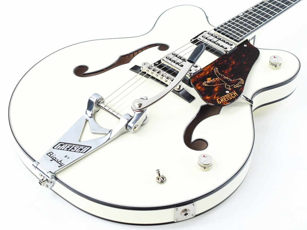 Deze Vintage White Falcon bevat een lange 25.5" scale, met een Bigsby B6C en een roller bridge om ervoor te zorgen dat hij helemaal op stemming blijft. Andere kenmerken zijn de old-skool tortoise accenten, de effectieve control lay-out en de betrouwbare Grover mechanieken.