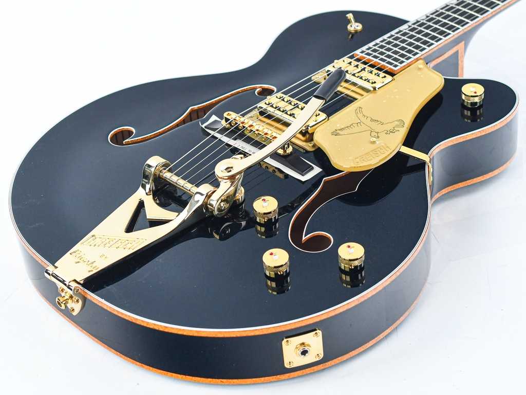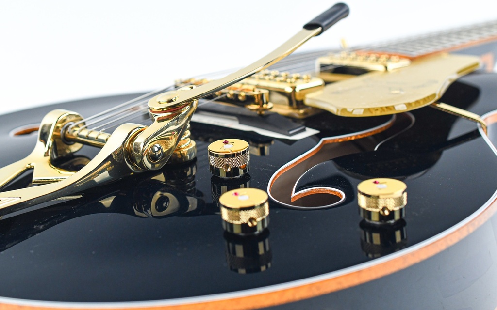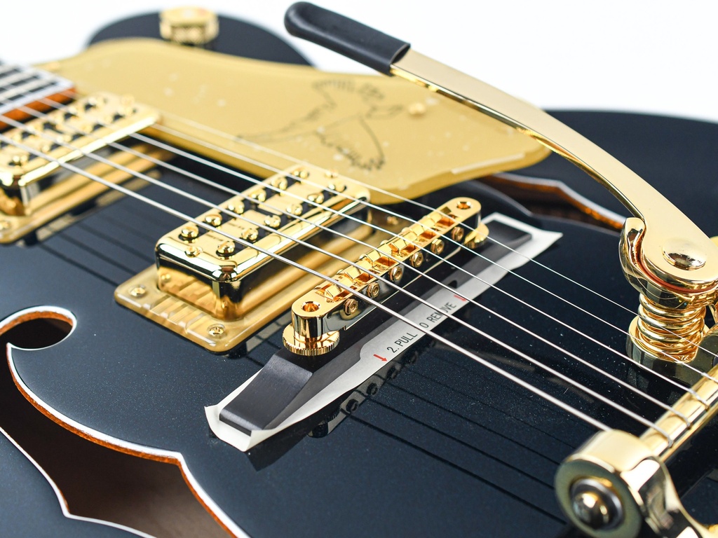 The all-new FT-67 Filter’Tron™ humbucking pickups capture authentic vintage Gretsch voicing but with a more well-rounded tone for modern playing styles. This powerful pair of pickups provide open and pristine top-end chime, glassy midrange, robust low end and balanced harmonics. The Bigsby B6GP vibrato tailpiece and Adjusto-Matic™ bridge offers even more versatility and allows for great tuning stability.