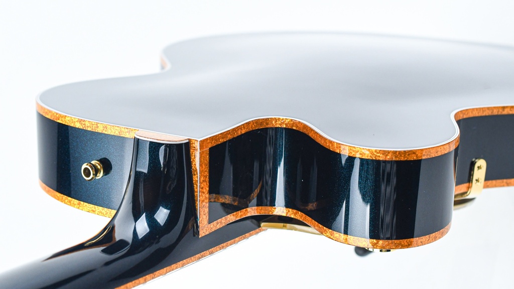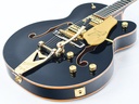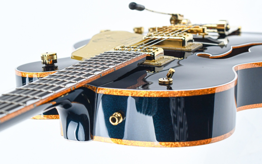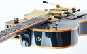The foundation of this G6136T is the typical 17" Falcon body, made of laminated maple and supported with Gretsch' ML-bracing. The stunning Midnight Sapphire finish is rich and has a lot of depth, and makes the already luxurious Falcon look even better! A 12”-radius ebony fingerboard with rolled edges and 22 medium jumbo frets top a 25.5”-scale maple neck with a comfortably familiar standard “U”-shaped profile for fluidly easy playing.