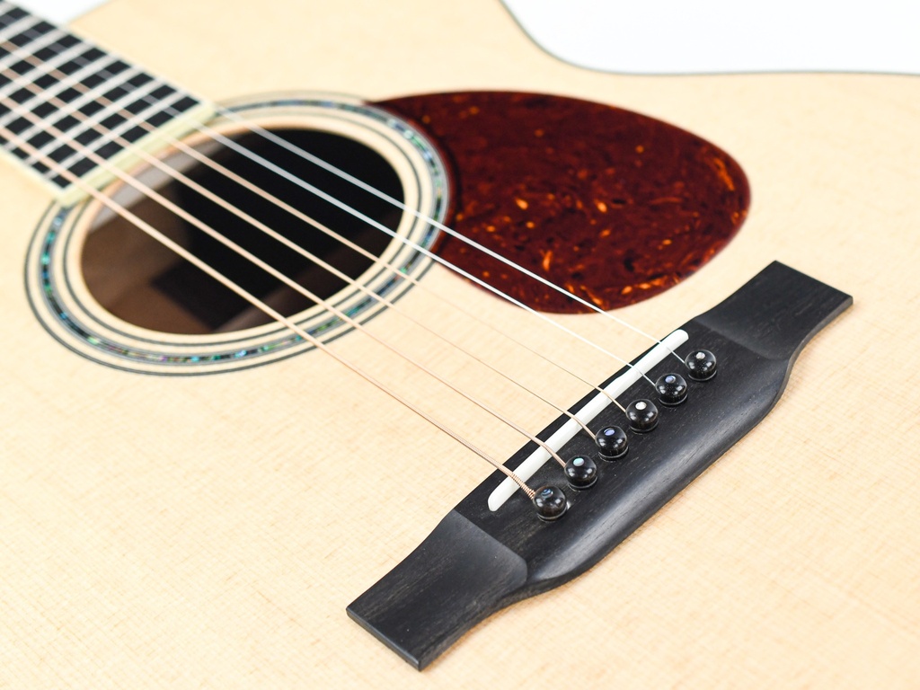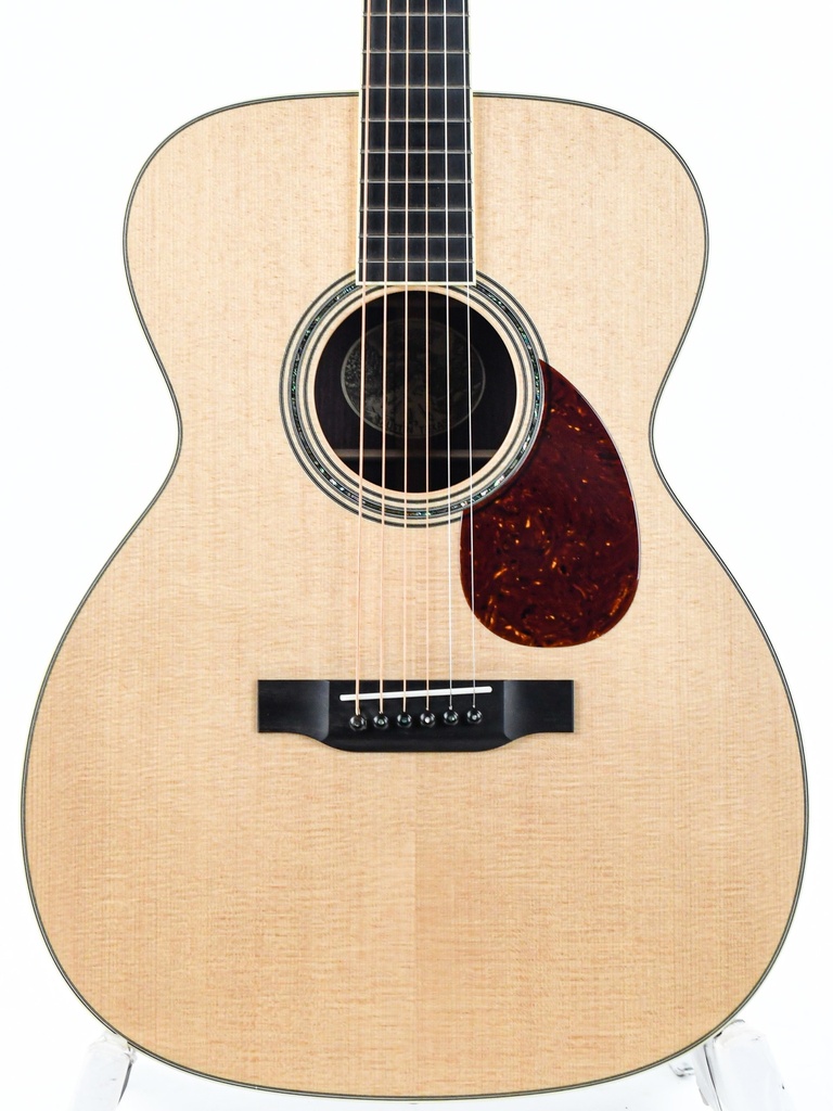'OM' stands for "Orchestra Model, but hasn't been used as just an orchestral instrument for quite sometime. After being superseded by the dreadnought (like the true battleship it is) in the early years, the OM has become the most popular 14-fret model nowadays. The reason is clear. The OM might be the most balanced sounding guitar design around and is known for its immediate response, sparkle, mid presence and fitting bass.