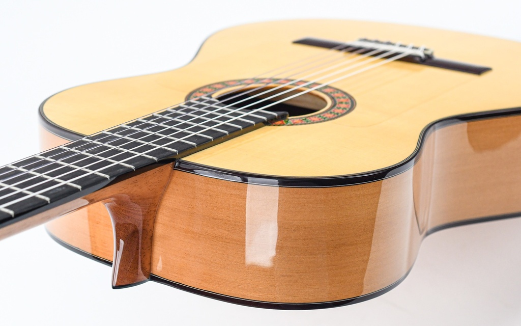 De 10Fc van Alhambra is een prachtige flamenco gitaar met een massieve klankkast van Cipres met Duits sparren bovenblad.