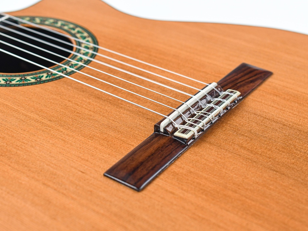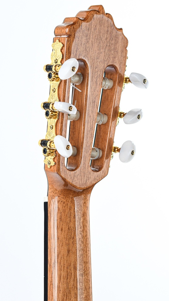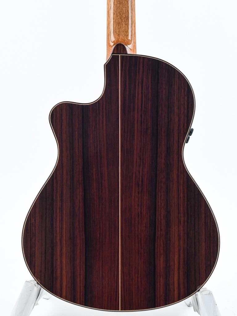 Met een iets smaller halsprofiel van iets meer dan 50 mm bij de topkam en de flexibiliteit van het massieve ceder bovenblad heeft dit instrument de veelzijdigheid sound, zowel versterkt als akoestisch. Hij heeft een ingebouwde Fishman pickup die naar wens van de artiest instelbaar is via een zorgvuldig geplaatst Fishman voorversterkersysteem.