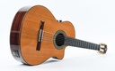 With a slightly narrower neck profile of just over 50mm and its flexibility of fine quality in cedar top, this instrument has the versatility of giving you a beautiful sound plugged or unplugged. It has a built in Fishman pick up that can be adjusted to your liking through a carefully placed Fishman pre-amp system.