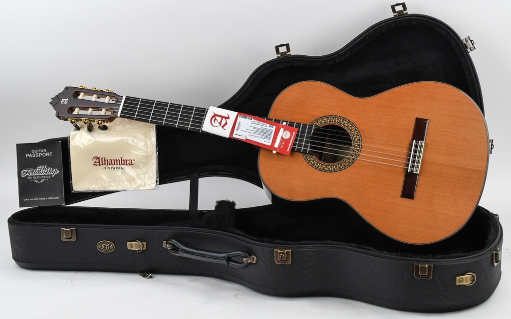The Alhambra 9P classical concert model is a balanced guitar in all aspects, robust, with concert dimensions and perfect playability. From the 8P and above, all Alhambra guitars are handmade by a small group of craftsmen sharing years of experience and know-how. This model has a beautifully balanced sound thanks to the special bracing pattern which gives the guitar plenty of volume and great projection. Includes hardshell case.