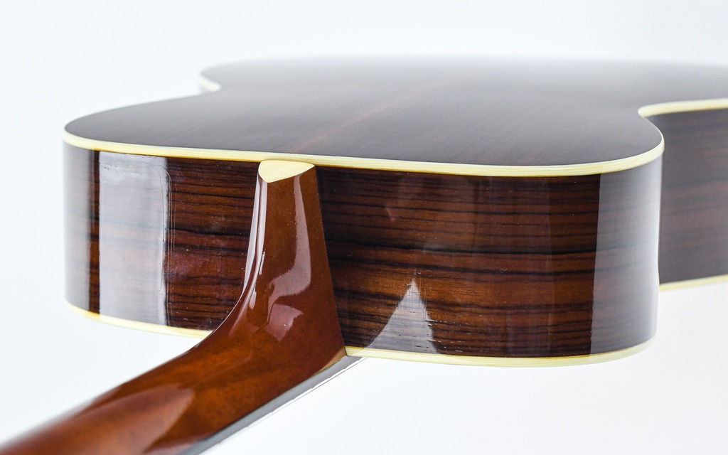 | Body Details | Grained Ivoroid Binding, Herringbone Purfling, Multi-Line Rosette, Tortoise Pickguard |