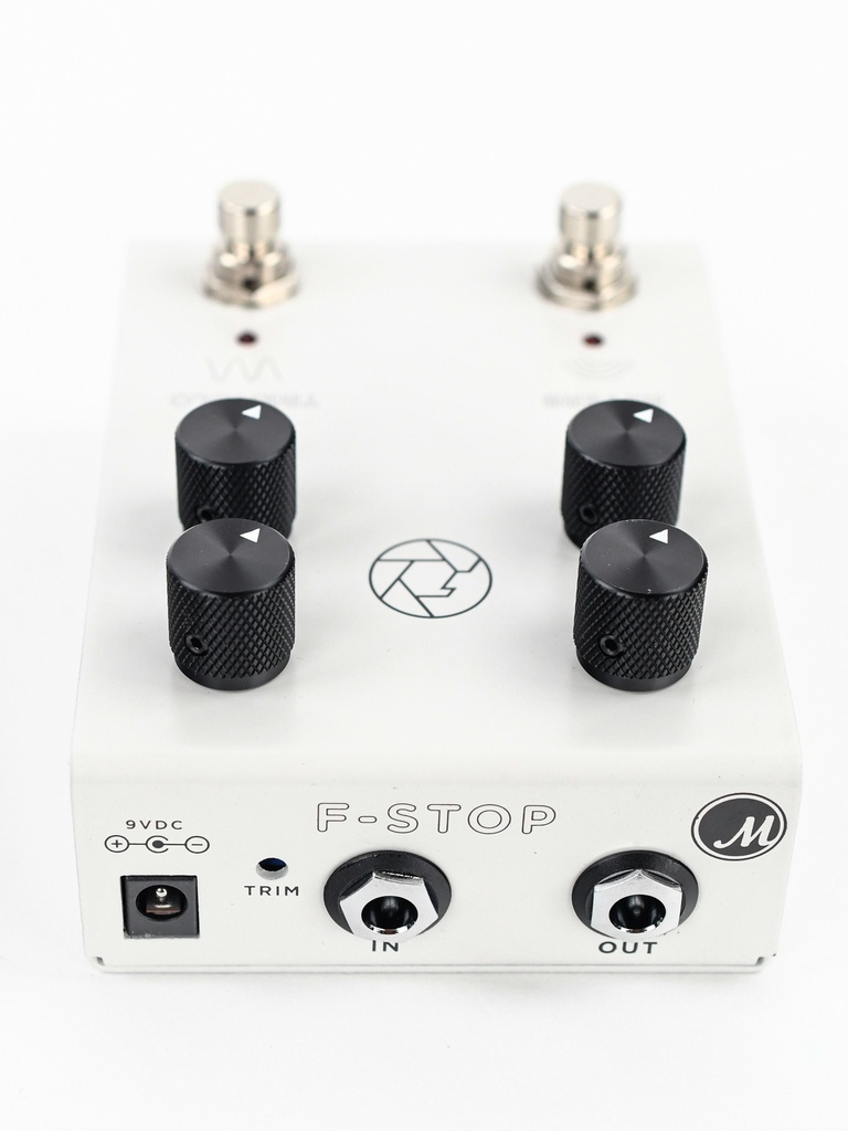De F-Stop is ontworpen om klassieke buizenversterker effecten in een klein pakketje te brengen dat werkt op een 9VDC pedaalvoeding. Intern heeft de F-Stop 18v aan headroom zodat hij net zo comfortabel aan het einde van je signaalketen kan staan als aan het begin. Het veergedeelte van het pedaal is digitaal, maar het gitaarsignaalpad en tremolocircuit is 100% analoog.
