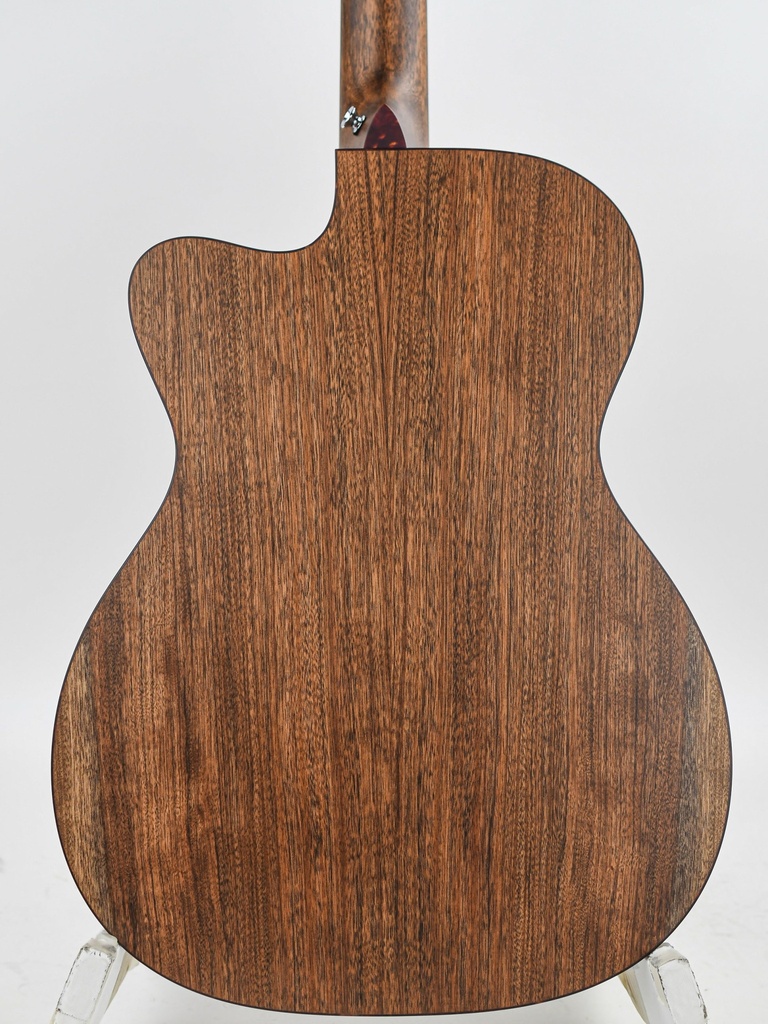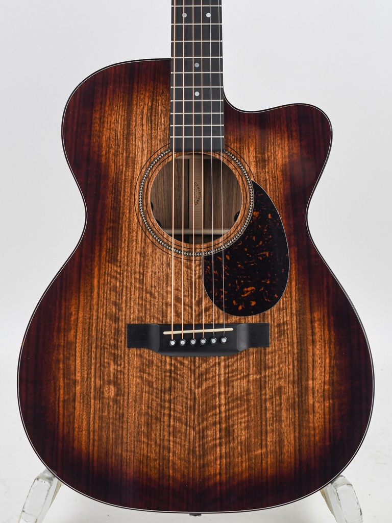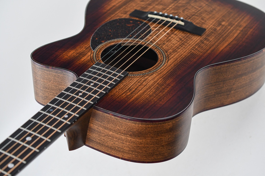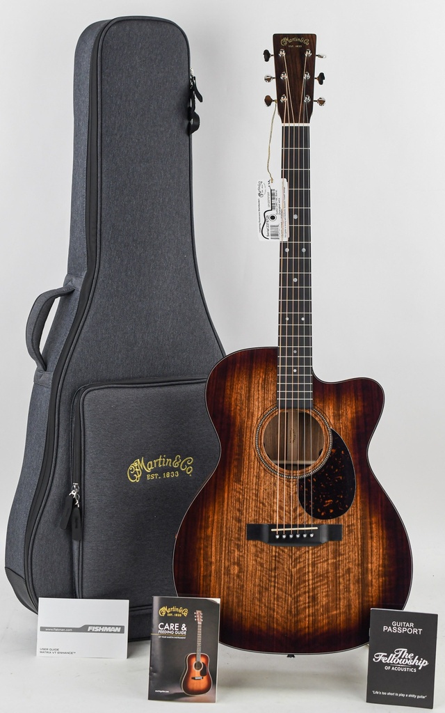 Deze Martin uit de 16-serie heeft Orchestra Model body shape met een cutaway en is voorzien van een glossy Mahogany Burst finish op de top. De gitaar is volledig opgebouwd uit Ovangkol, een klankhout dat wordt gewaardeerd om zijn consistente diepe lage tonen en rijke boventonen. Het uiterlijk van Ovankol kan echter sterk variëren en de complexiteit en kleur van de korrel. De achterkant en zijkanten zijn afgewerkt met satijn waardoor het klankhout vrij kan resoneren en ademen. De mahonie hals heeft een low-oval high-performance halsprofiel voor gemakkelijke bespeelbaarheid overal op de toets. De OMC-16E is uitgerust met een Fishman Matrix VT-verbeteringssysteem en een Martin softshell-koffer.