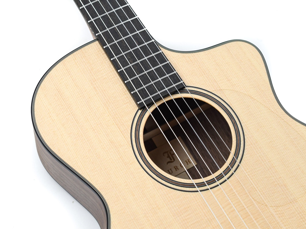 The neck of the GNC2 is crafted from African mahogany and features a Furch Soft V profile, offering a comfortable and ergonomic playing experience. With a scale length of 650 mm and an ebony fingerboard with a 400 mm radius, this guitar provides smooth playability across the entire fretboard.