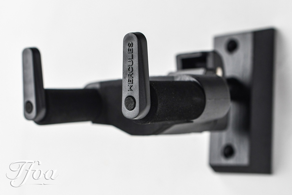De HERCULES Auto-Swivel Yoke Hanger GSP38WB PLUS roteert automatisch en is dus geschikt voor het veilig ophangen van verschillende soorten gitaren of bassen.