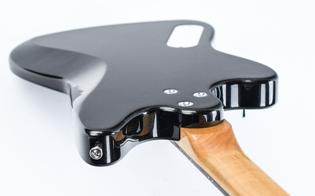 The alder body combined with the bolt-on maple neck create a clear and crisp response that when combined with the mini humbuckers gives the guitar a Telecaster or Firebird-like tone that is remarkably versatile and sounds fantastic.