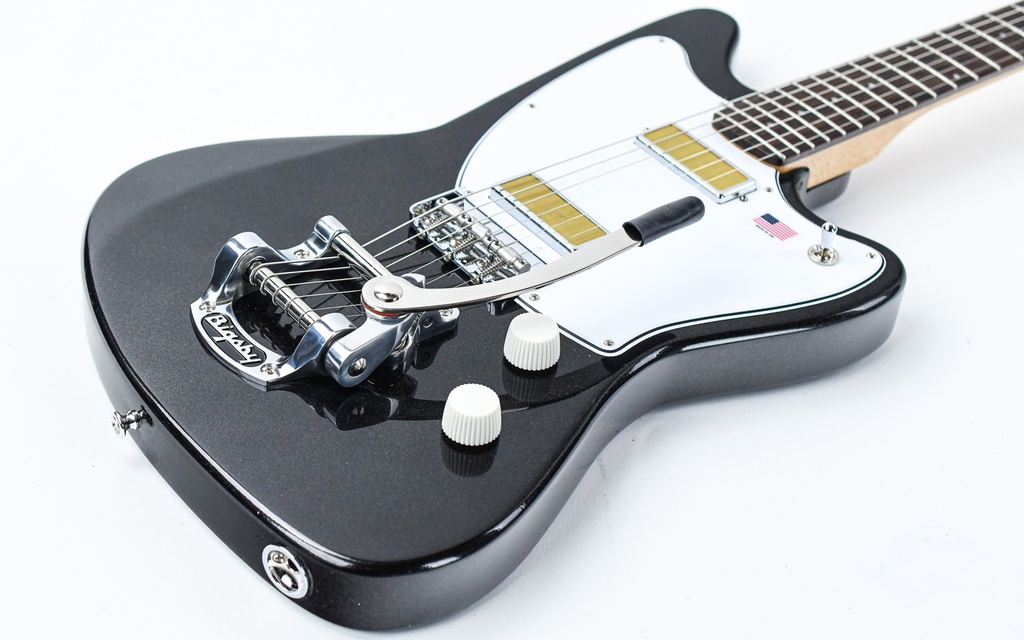 Het unieke en onderscheidende design van de gitaar wordt aangevuld met een Bigsby B5, die op het gebied van zowel klank als uiterlijk de gitaar van net dat beetje extra's voorziet. De Harmony Silhouette wordt geleverd in een Mono Vertigo gigbag.