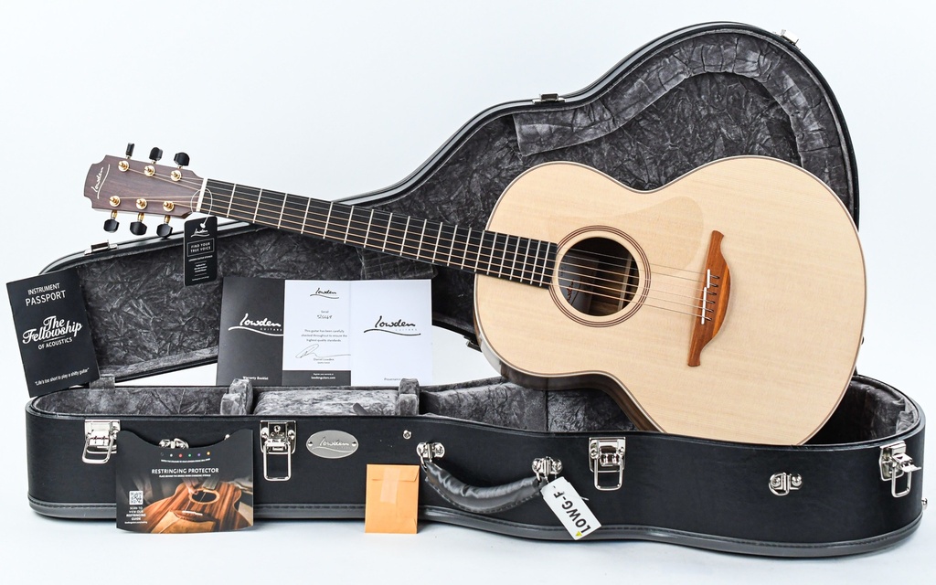 Lowden staan ​​bekend om hun subtiele gebruik van majestueuze houtsoorten en tijdloos design en dit wordt perfect gedemonstreerd in de F34. Het fundament bestaat uit Koa voor de zij- en achterkant, en een fijn nervige Sitka sparren top die de dynamische en sprekende Koa klank perfect uitbalanceert. Het result is een piano-achtig laag, met een uitgesproken midden en een loepzuiver hoog. Een perfect canvas om alle auditieve kleuren op aan te brengen.
