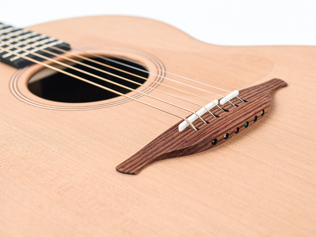 Het geluid van de F25 is namelijk mooi en uniek. De Indisch palissander klankkast geeft deze Lowden een kristalhelder hoog en een flink, maar gedefinieerd laag. Het ceder bovenblad verzacht de respons en balanceert het uitgesproken laag en hoog tot een geweldige mix van beide.