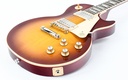The Les Paul Standard 60's has a solid mahogany body with an AA figured maple top, and a slim taper 60's-style mahogany neck with a rosewood fingerboard and trapezoid inlays. It's equipped with a classic-style Tune-O-Matic bridge, aluminum stop bar tailpiece, Grover Rotomatic "Kidney" tuners, and gold top hat knobs with silver reflectors.