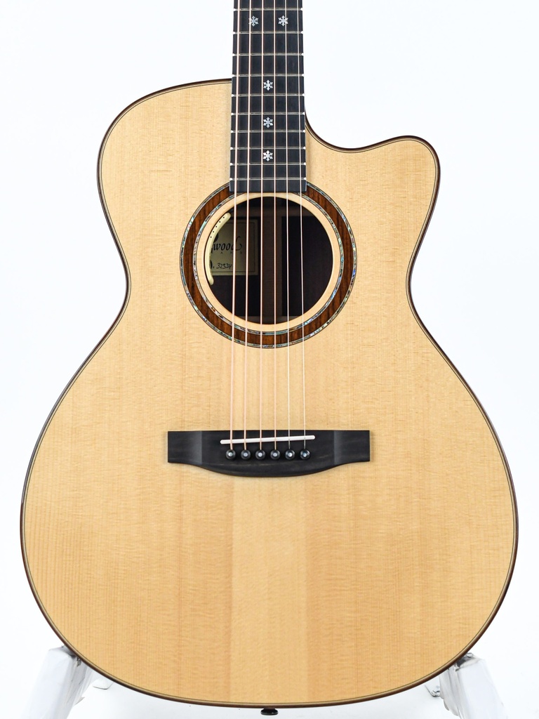 Sie verfügt über eine Decke aus europäischer Fichte, Boden und Zargen aus indischem Palisander, Griffbrett und Steg aus Ebenholz und ein L.R. Baggs Anthem-Tonabnehmersystem, so dass sie sich im Studio und auf der Bühne behaupten kann.