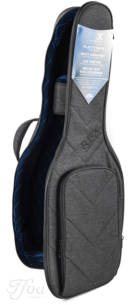 The essence of Reunion Blues' passion is represented in it's sleek aesthetic design, from the Quilted Chevron exterior to the padded Blue Luster lining. The RBX protection system features a lightweight multi-layer foam surround with strategically placed impact panels, and a dense foam neck cradle and endpin rest that keep the guitar safe and secure. Padded backpack straps, an integrated subway grip, and Reunion Blues signature Zero G handle make getting around town a breeze. A large but low profile pocket includes a cable loop and organizer and provides ample storage without adding bulk.