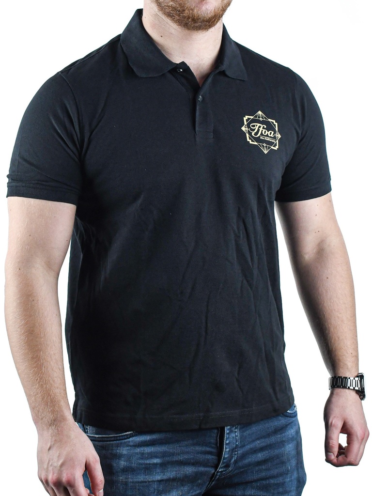 Deze zwarte TFOA Polo is gemaakt van 100% biologisch katoen en bevat ons contrasterend geel 'Anniversary logo' ter ere van ons 20 jarig jubileum!